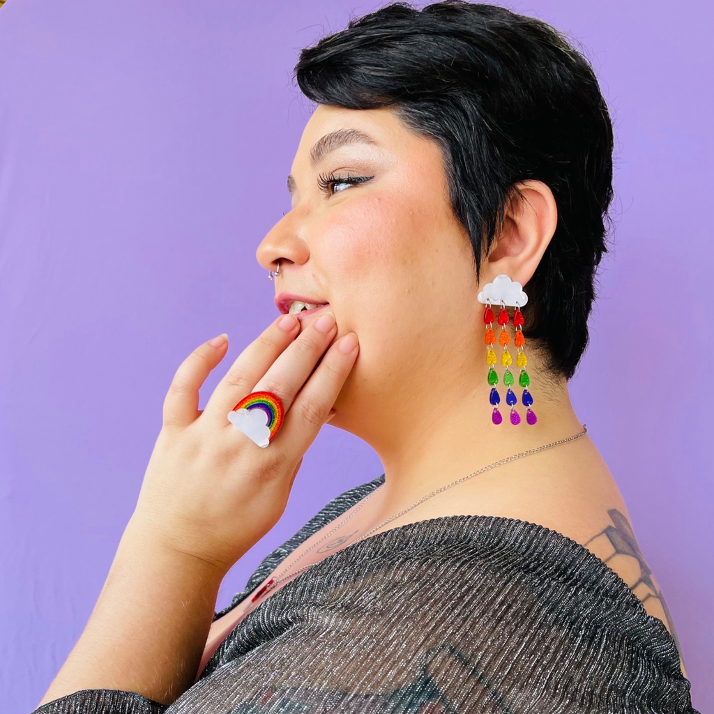 O brinco chuva de amor é literalmente para espalhar amor por onde for. Nuvem feita em acrílico perolado e gotas em acrílico purpurina.