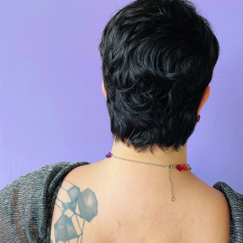 A gargantilha Love conquistou corações, e agora veio numa versão empoderada e com as cores da bandeira PRIDE. Pode ser usada mais curta e justa, como uma choker, ou maior, em formato colar curto. Feito em acrílico.