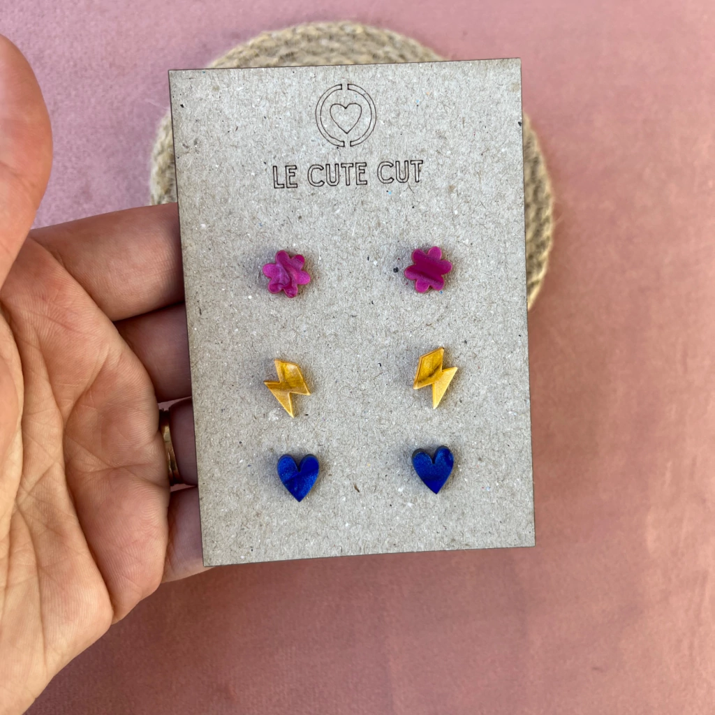 Trio de Mini brincos em acrílico com pino em aço inox (antialérgico), perfeito para quem gosta de brincos pequenos ou para usar no segundo furo.