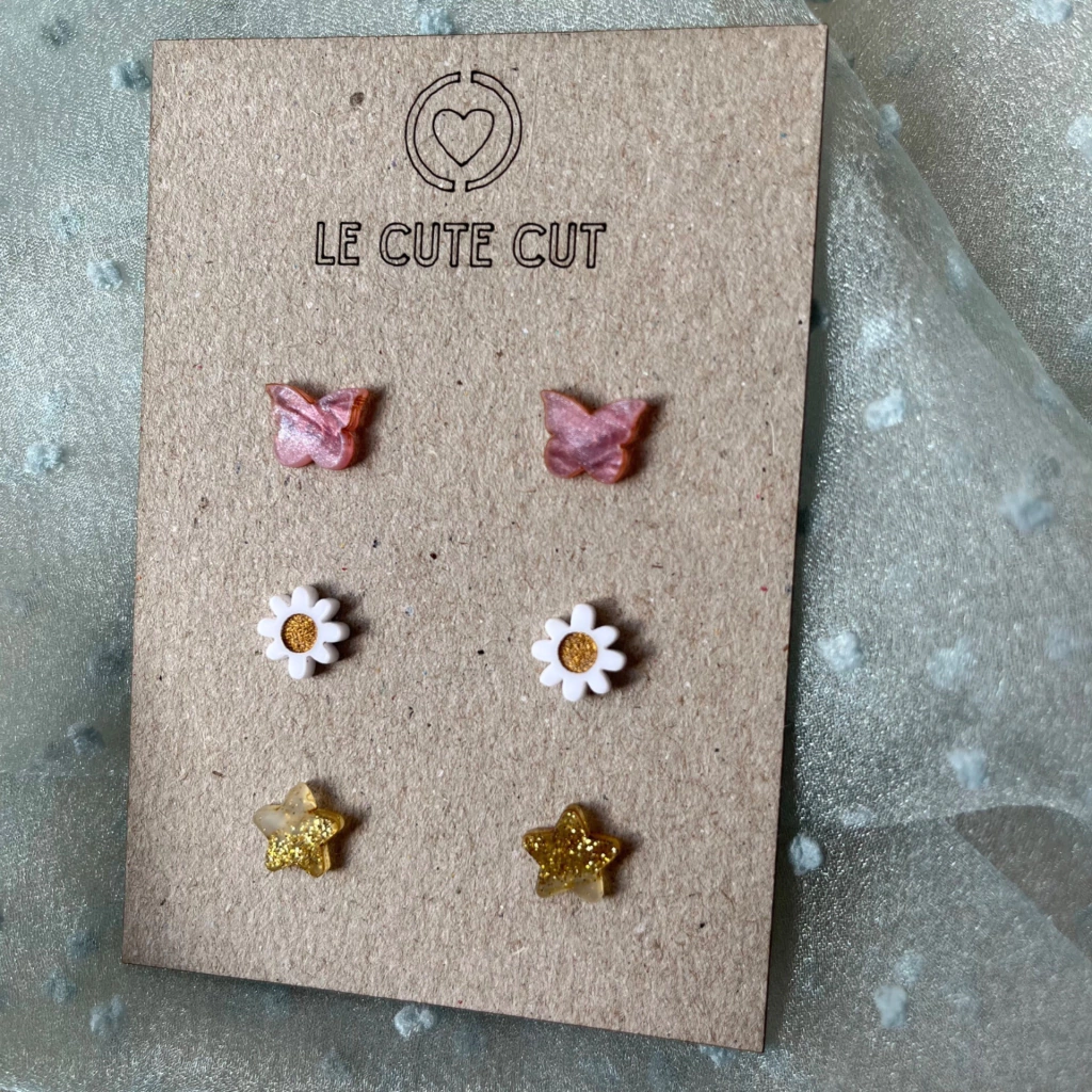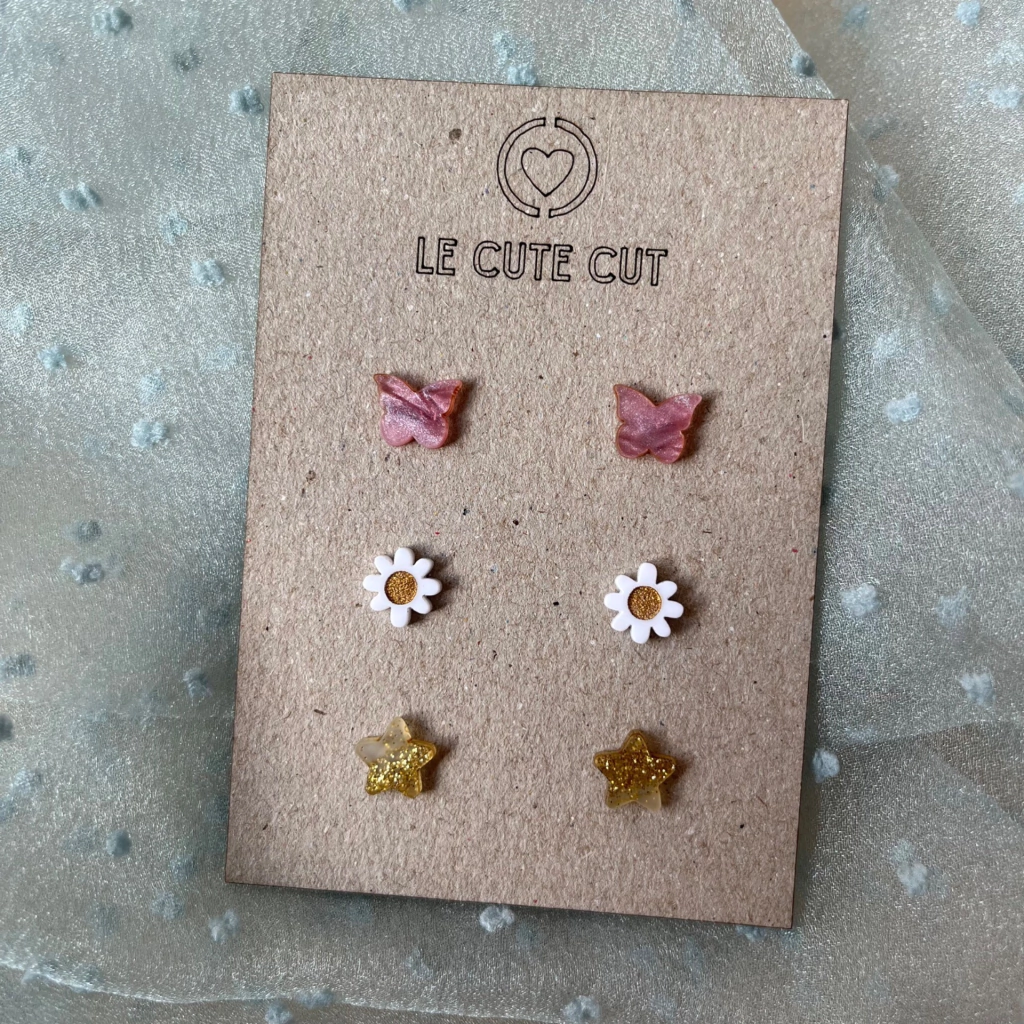 Trio de Mini brincos em acrílico com pino em aço inox (antialérgico), perfeito para quem gosta de brincos pequenos ou para usar no segundo furo.