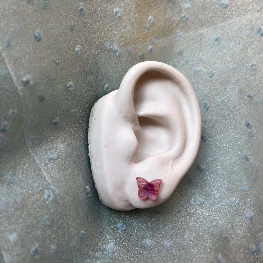 Kit acompanha 3 pares dos formatos: borboleta (rosa perolado), margarida (branco com dourado) e estrela (pérola com dourado).